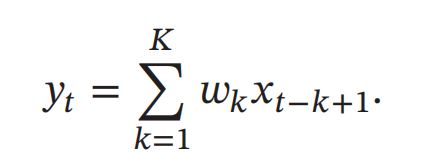 我们把𝑤1, 𝑤2, ⋯称为滤波器(Filter)或卷积核(Convolution Kernel)。假设滤波器长度为𝐾,它和一个信号序列𝑥1, 𝑥2, ⋯的卷积为