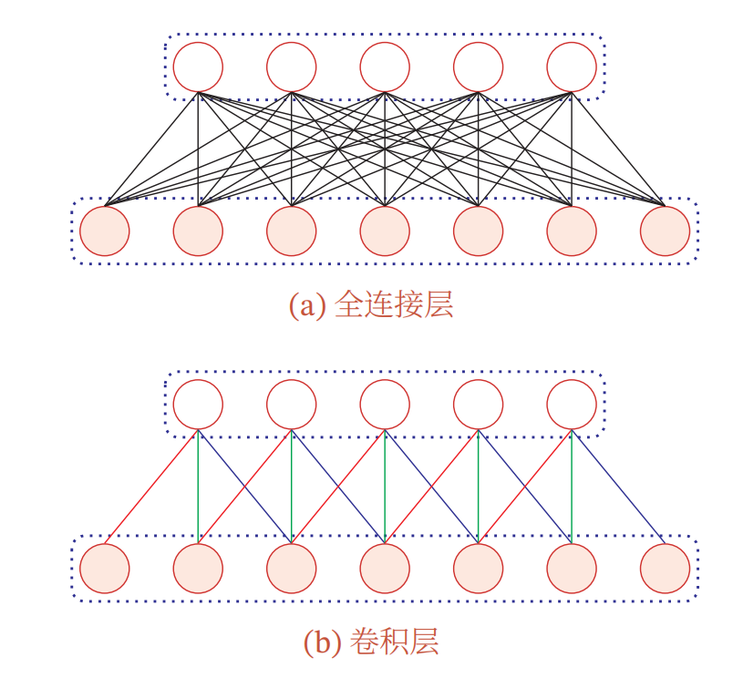 - 参数共享:同一卷积核在整个输入上滑动,共享权重 → 参数量大幅减少