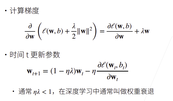 这就是“权重衰减”名字的由来:权重在每次迭代中都会自动衰减。