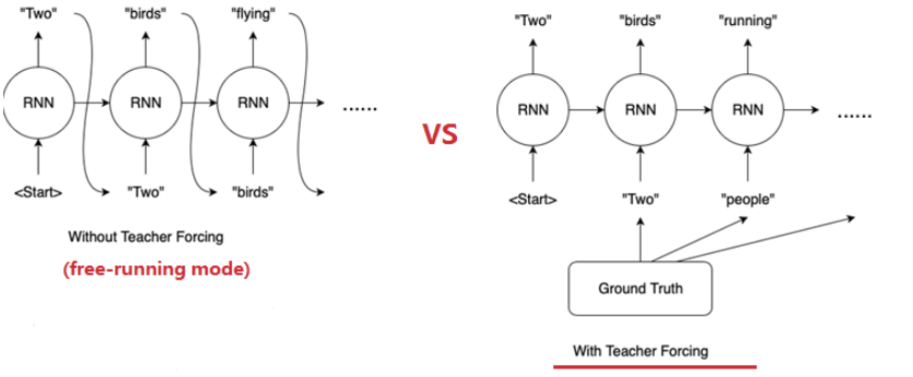 - 直接使用训练数据的标准答案(ground truth)的对应上一项作为下一个state的输入,而不是使用模型生成的输出。