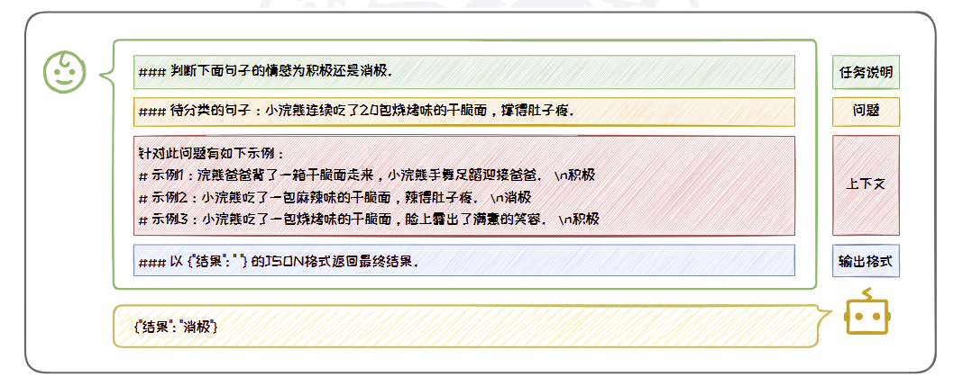 经典的Prompt通常由任务说明,上下文,问题,输出格式等部分中的一个或几个组成。