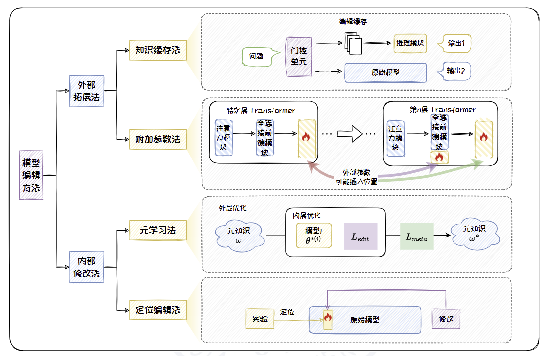 现有编辑方法分为外部拓展法和内部修改法。