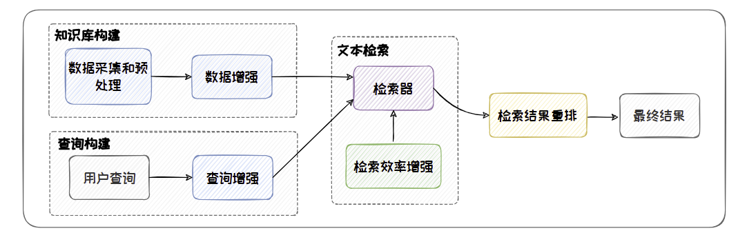 在RAG 中,检索的效果(召回率、精度、多样性等)会直接影响大语言模型的生成质量。优化检索过程,提升检索的效果和效率,对改善RAG 的性能具有重要意义。