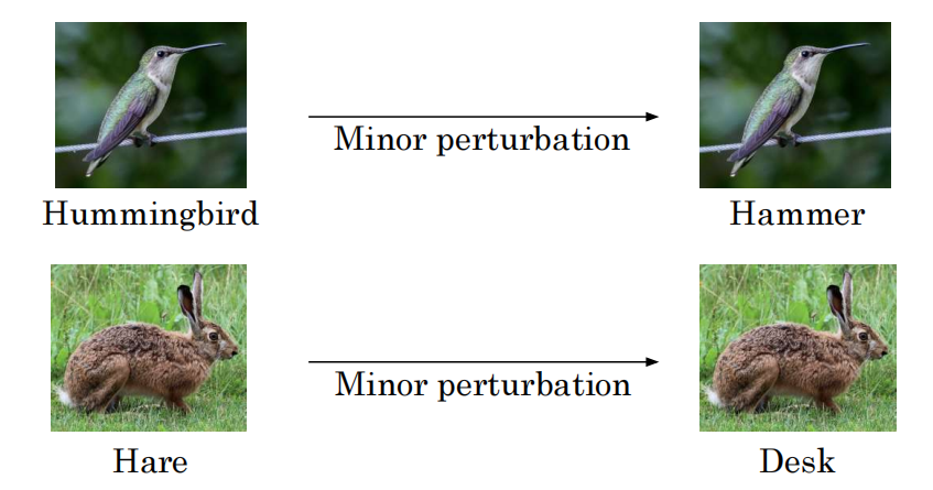AI 看待图片的方式与人类不同,通过修改图像的像素,人类可能认为还是同一个种类,但是对于 AI 而已是不同种类