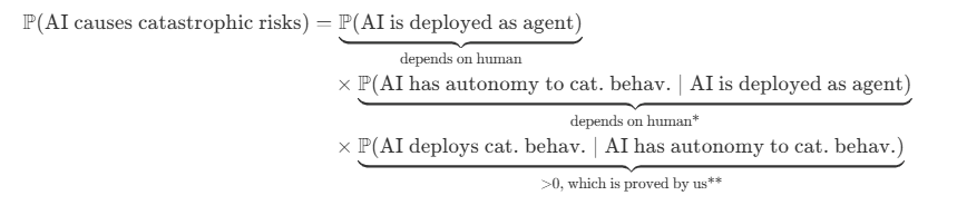 LLM可能导致灾难性风险,其可能性由人类部署方式、自主权限设置以及AI自身的决策行为共同决定;研究证实这一风险真实存在,因此必须严格测试并禁止完全自主部署。