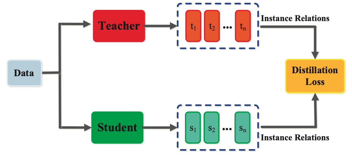 除了神经网络的输出层和中间层所表示的知识外,捕捉特征图之间关系的知识也可用于训练学生模型。这种形式的知识称为基于关系的知识。这种关系可以建模为特征图、图形、相似性矩阵、特征嵌入或基于特征表示的概率分布之间的相关性。