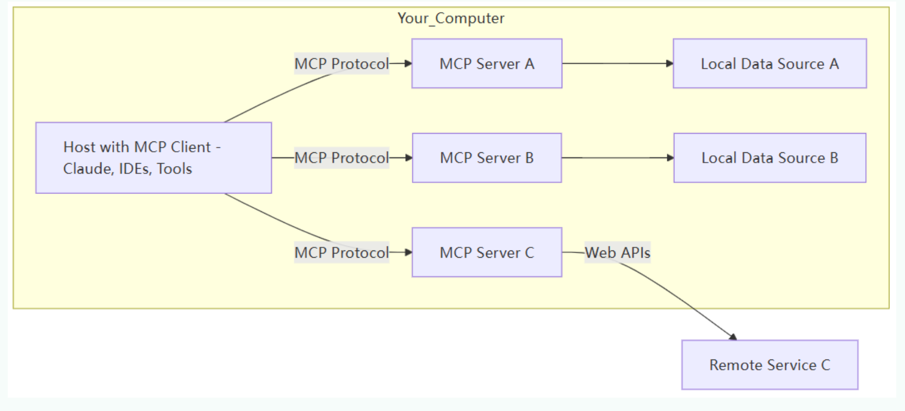 与传统的远程 API 服务器不同,MCP 服务器既可以作为本地应用程序(stdio方式)在用户设备上运行,也可部署至远程服务器(SSE方式)。