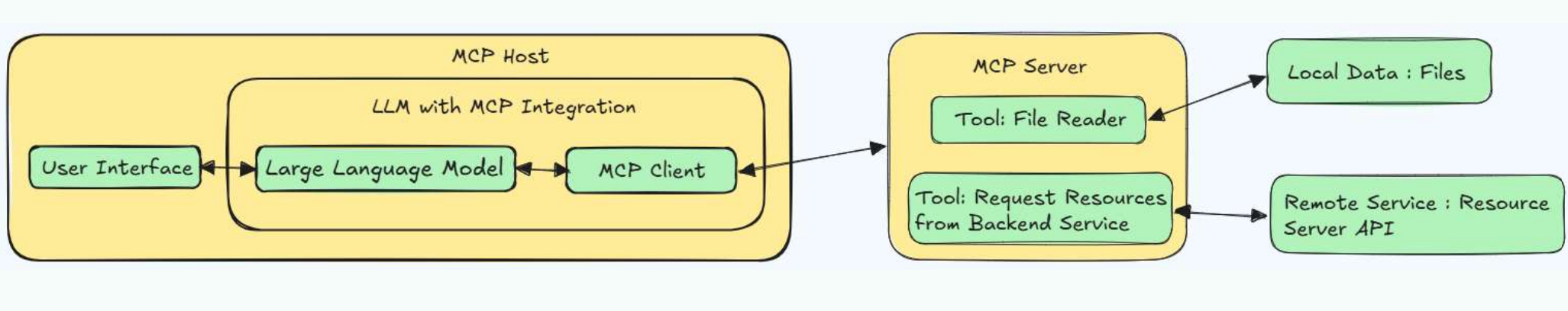 每个 MCP 服务器都提供了一组特定的工具,负责从本地数据或远程服务中检索信息。是 MCP 架构中的关键组件。